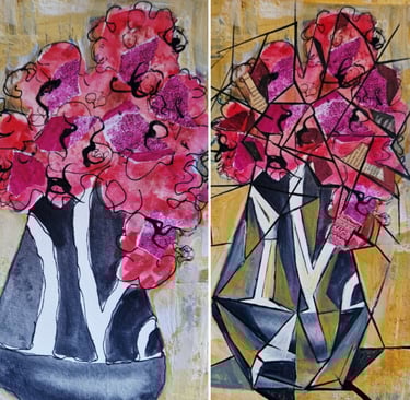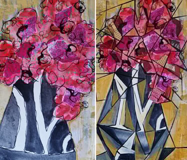 AI is here to stay and we need to get on board now. I say grab it, push it to its artistic limits and rather than worry about it 'stealing' our patrons, use it for inspiration. Just look at my mixed media work on the left above and see what AI did to it in less than a minute - albeit following my clear instructions. I asked Gemini, the free app on my Samsung, to create my artwork in the style of Picasso. I love it - it's taken the composition to the next level and I am now inspired to redo my original using the AI generated version.