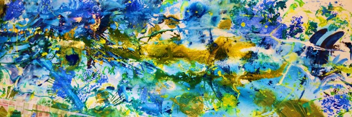 And then we're off. Liz grabs the cobalt blue spray paint and we've started. Everyone dives in, attacking this long canvas with a quite surprising blend of complementary colours and marks. We're going with the flow (no pun intended).
